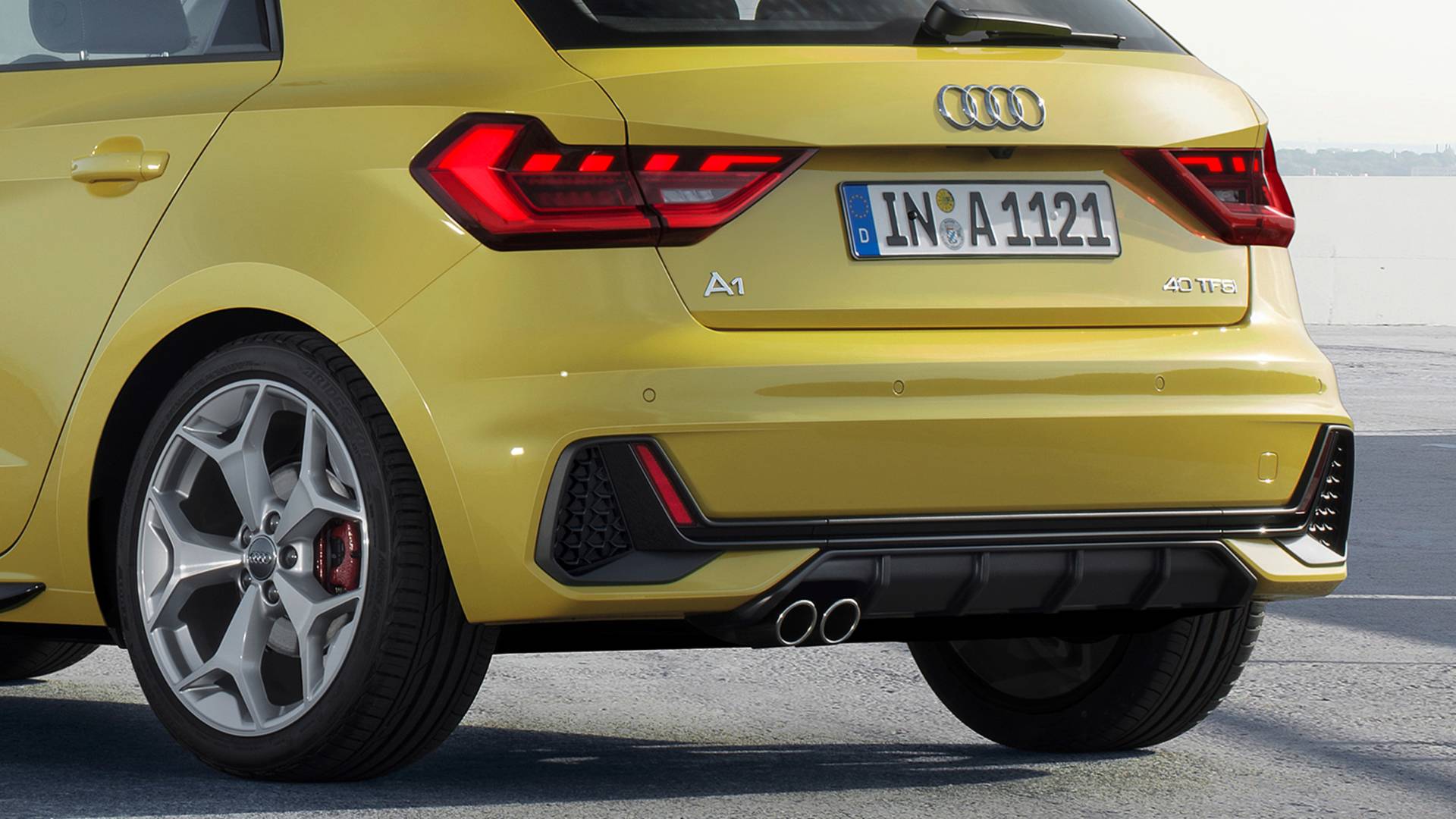 Dizajn novega Audija A1 lahko povežemo z modeloma Ur-Quattro in Sport Quattro, in čeprav je A1 daleč od ラリー avtomobila, ima z njimi kar nekaj oblikovnih podobnosti. V zadku padajoča strešna linija in črna barva strehe mu dajeta bolj agresiven videz, še posebej, ko ga primerjamo z njegovim predhodnikom. Sicer pa različne odprtine premorejo le kozmetično funkcijo … in so tam, da avtomobil izgleda malo boljše. Sicer izjemen C-stebriček, ki sicer nekoliko moti preglednost avtomobila, poudari ostre kote prisekanega zadka. Pri izbiri paketa S Line pa bo imel A1 večje odprtine za zrak in večji zadnji spojler. Na izbiro bodo platišča v velikostih od 15 do 18 palcev. Slednja bodo na volji v 黒 また platinasto sivi barvi pri že omenjeni opremi ラインから.
