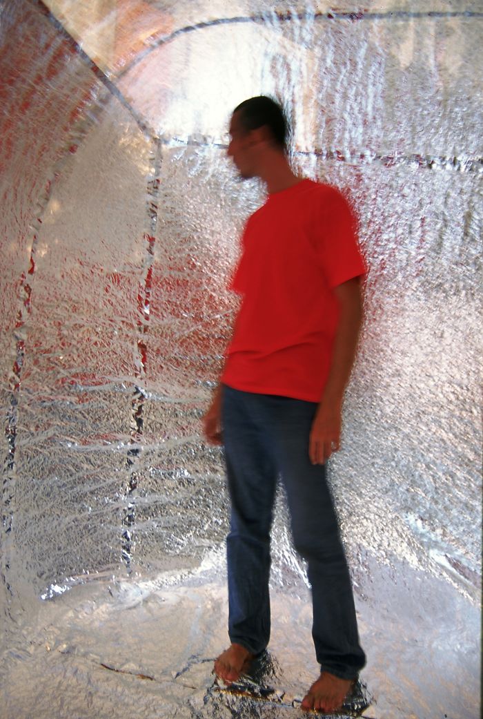 Martin Azua je iz tega materiala izdelal samonapihljivo mobilno hiško Basic House, ki jo lahko pospravite v žep, razširi pa se na velikost, ki nudi udobno in varno zavetje. Izotermična folija ima namreč dvojno funkcijo. Ogreva in hladi. Srebrna stran ščiti pred mrazom, zlata pa pred vročino. Folija v tem primeru odbija žgoče sončne žarke in absorbira telesno toploto, srebrni del pa po drugi strani zaščiti tudi pred vlago.