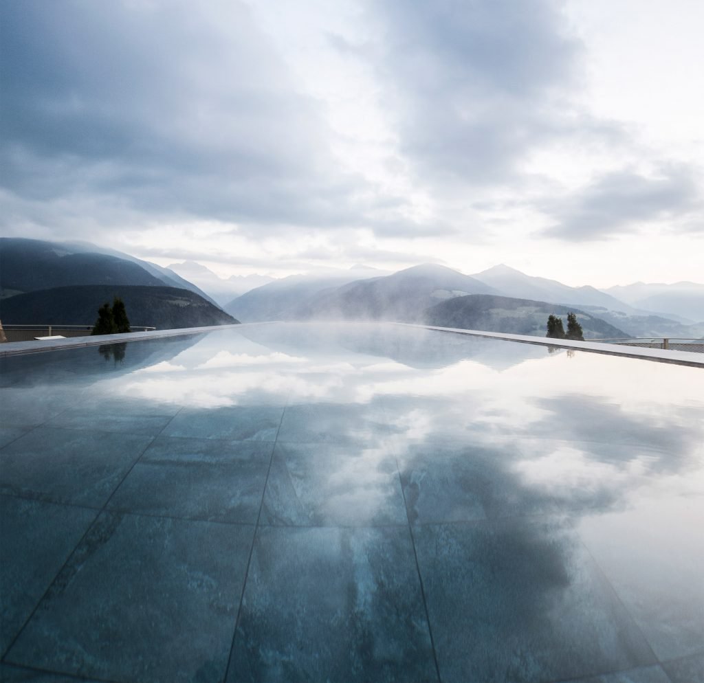 Arhitekturni studio ノア のためのものです hotel Hubertus v italijanskem Kronplatzu, ki velja za priljubljeno pribežališče smučarjev in pohodnikov, izdelal previsno ploščad z zunanjim bazenom, ki ponuja prečudovit razgled na Dolomite. Kot da to ne bi bilo dovolj, ima 25-metrski bazen delno ガラス底, kjer med plavanjem dobite občutek, da lebdite v zraku.