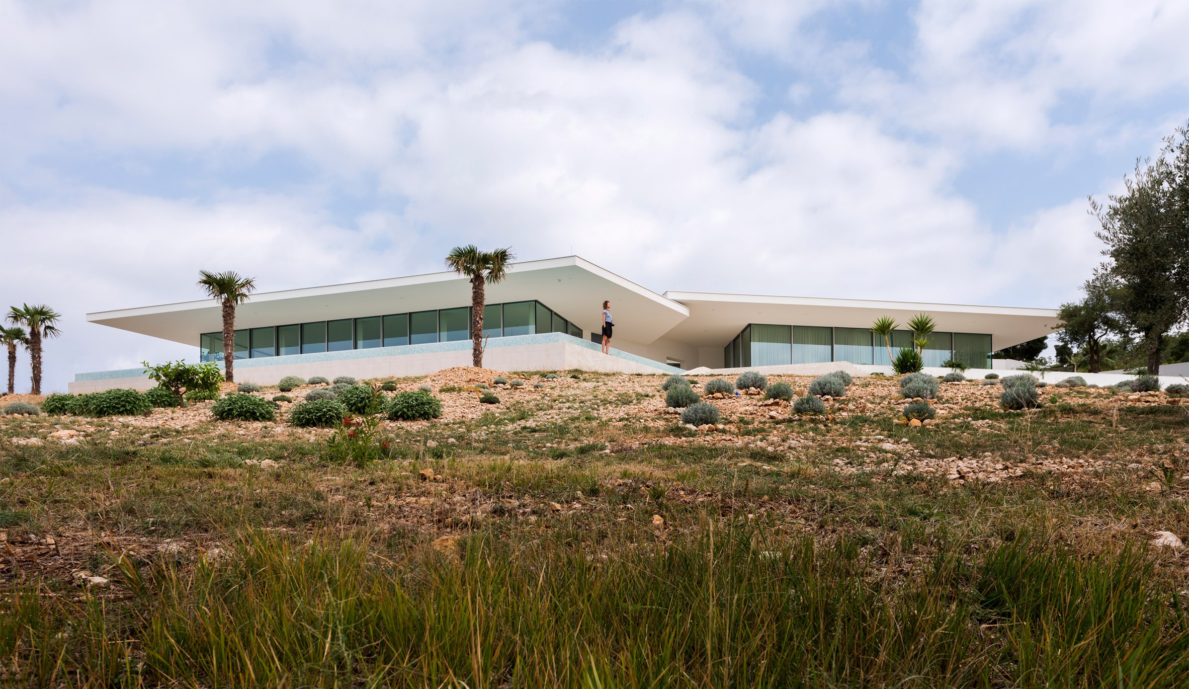 Postavitev jo deli na “zasebni in javni del”, medtem pa ponuja odličen razgled na Jadransko morje in dopolnjuje okolico. “Javni” del se nahaja na vzhodni strani parcele in ima velik odprt dnevni prostor, jedilnico, ki se odpira na prostorno teraso in bazen. “Zasebni” del, kjer sta tudi dve spalnici, vsaka z lastnim vhodom, je nekoliko dvignjen in odmaknjen od bazena.