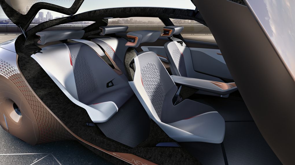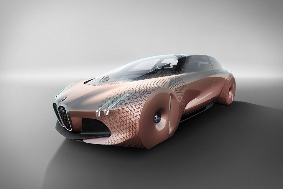BMW Vision Next 100 Concept それはです študija avtonomnega vozila, ki se popolnoma podreja potrebam voznika. Da se voznik in avtomobil čutita kot eno, so pri BMW-ju dosegli s sistemom ”Alive Geometry” (živa geometrija), ki z voznikom komunicira v načinih Boost in Ease. V prvem prepušča vozniku nadzor nad upravljanjem in ga s sistemom aktivne varnosti kot angel varuh varuje pred nevarnimi situacijami (s prikazom idealne linije vožnje, svetovanjem o optimalni hitrosti, nagibom volana, projekcijo nevidnih ovir …), v načinu Ease pa voznik vozilu povsem prepusti nadzor in izbiro, saj je namenjen avtonomni vožnji (volan se pospravi v armaturno ploščo, prilagodijo se vzglavniki, sedež voznika in sovoznika se obrneta drug proti drugemu …). V skladu z obema režimoma se močno spremeni notranjost, ki se lahko pohvali s kar 800 gibljivimi deli.
