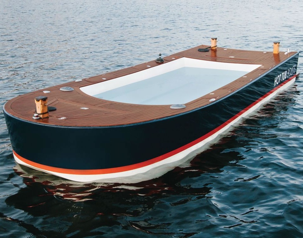 Hammacher Schlemmer Hot Tub Boat je v Seattlu ročno izdelal ladijski tesar.