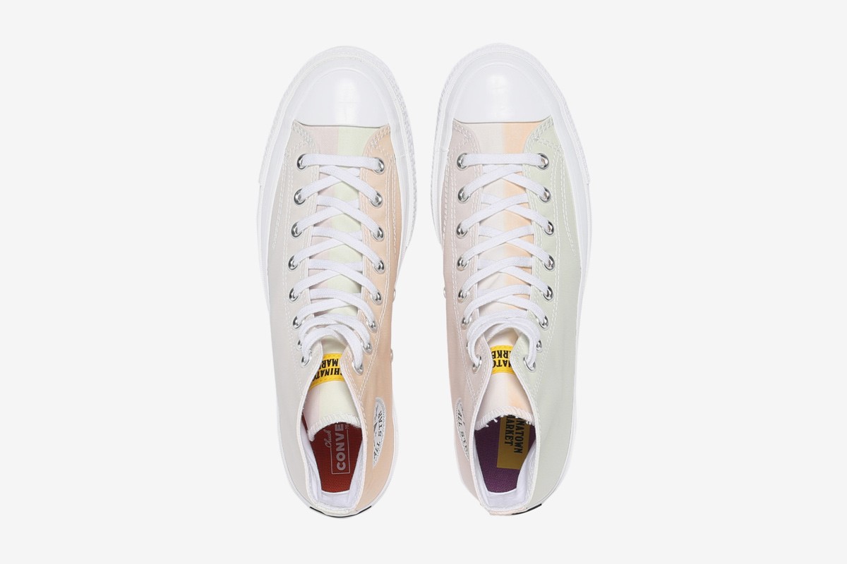 コレクション Converse x Chinatown Market je sestavljena iz visokih superg Chuck 70 Hi in nizkih superg Chuck 70 Ox – te po zaslugi posebne tehnologije ob izpostavljenosti UV-svetlobi spreminjajo svojo barvo.