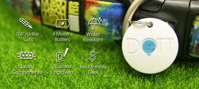 Pametni obesek za pse Dott z akcijskim radijem 107 metrov vaš telefon spremeni v navidezni povodec. Je kot obesek Tile, a hkrati mnogo več. Če gre vaš pes izven dosega obeska, lahko izgubo psa prijavite pasji skupnosti, to je ljudem, ki so si na svoj telefon prenesli Dott aplikacijo. Kot Dott odda signal nekomu z naloženo aplikacijo, avtomatično in anonimno obvesti lastnika o lokaciji psa. Tako vam lahko tujci, ne da bi sploh vedeli, pomagajo najti vašega štirinožnega ljubljenčka.