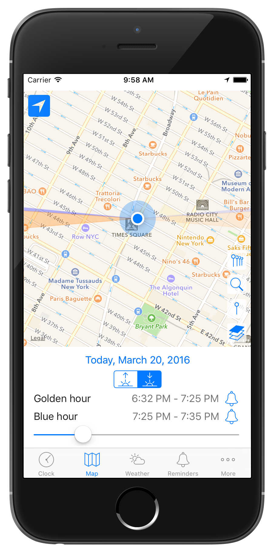 Da bi kar najlažje ugotovili, kdaj je idealen čas za zajem posnetkov na prostem, nam zdaj pomaga omenjena aplikacija Hane Kusove, ki do minute natančno določi čas in trajanje zlate ure (čas takoj po sončnem vzhodu in pred sončnim zahodom, ki je primerna za vse vrste fotografij) glede na vašo lokacijo.