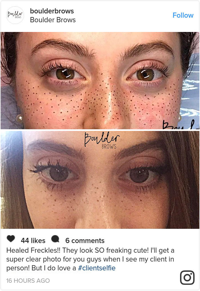 Začasno tetoviranje pegic, znano kot freckling, je trenutno najbolj vroč lepotni trend. Čeprav so sprva pege izjemno izrazite, pa sčasoma zbledijo in dobijo bolj naraven videz, popolnoma pa z obraza izginejo po okoli dveh letih.