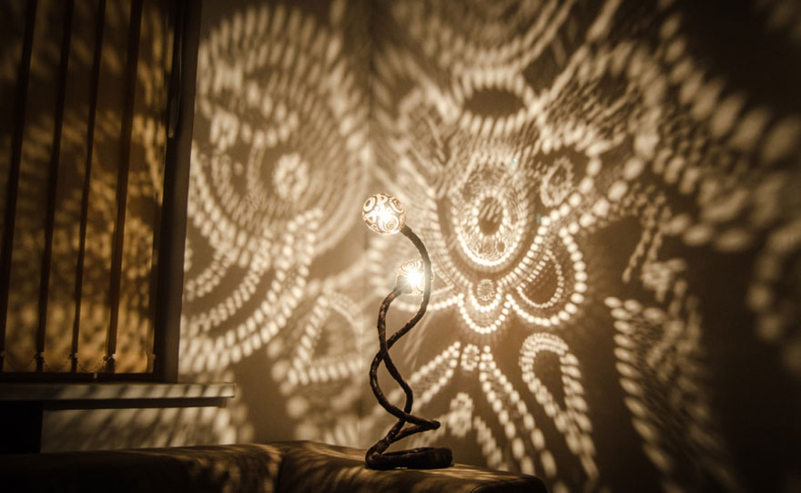 Umetnik inspiracijo črpa iz del umetnika Calabrata in vsakdanjega življenja, izdelava luči pa mu je vzela kar devet mesecev. S časom in učenjem je svoje spretnosti izpilil, kar mu danes omogoča hitrejšo in natančnejšo izdelavo čudovitih svetilk. Glava kokosove svetilke je narejena iz zbrušenega in prelakiranega kokosovega oreha, ki se sveti kot dragulj. Postavljena je na stojalo, ki ovito z usnjem deluje malce zastrašujoče, kar pa vsekakor ne omejuje magičnosti prižgane svetilke.