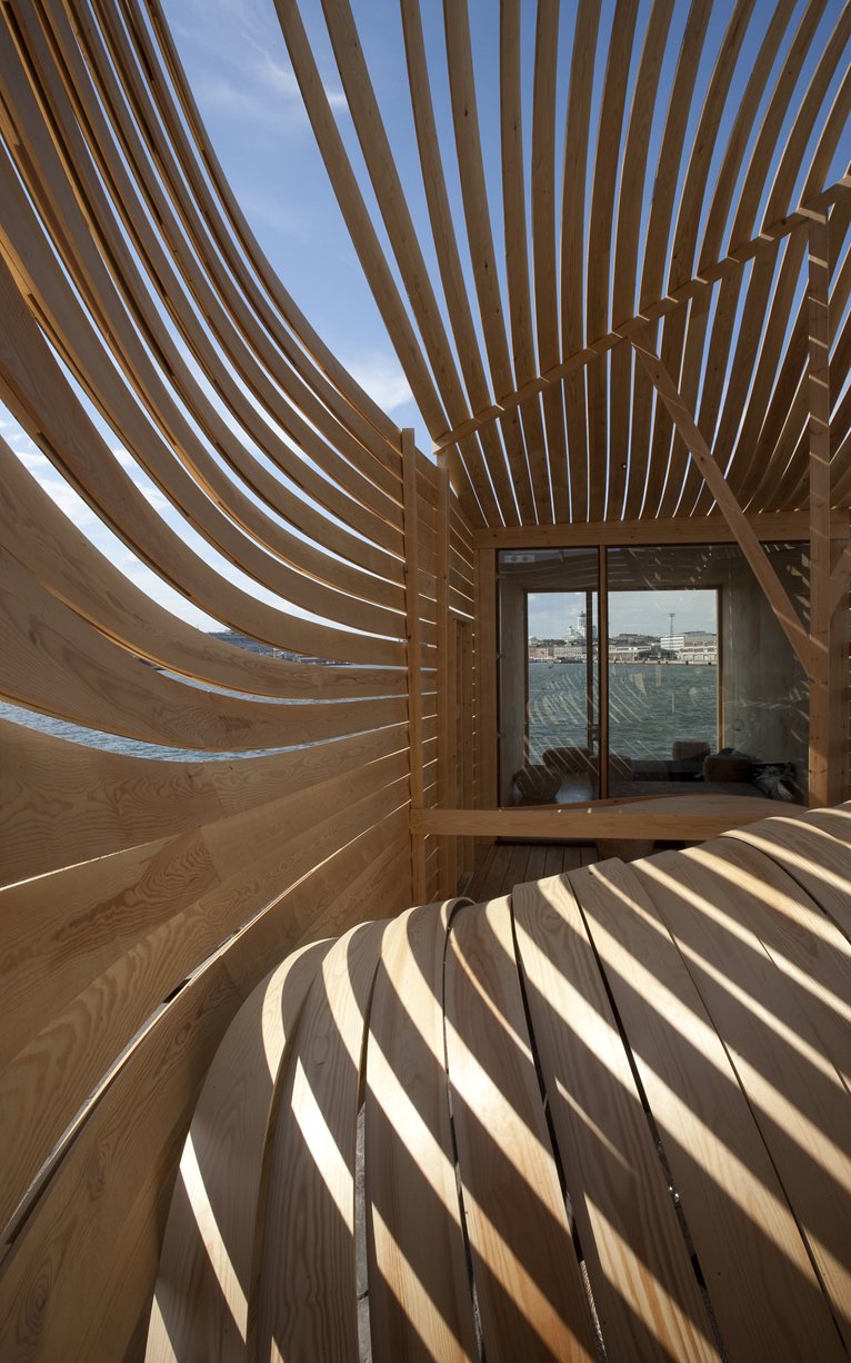 Lesen dizajnerski hotel WISA je nastal za 24. delavnico raziskovanja oblikovanja lesa, ki ga je organiziralo finsko podjetje za predelavo lesa UPM Kymmene z namenom, da bi prikazali večplastnost in razpon možnosti, ki jih nudi ta naravni material. Hotel, ki, protislovno, ni bil zasnovan kot klasičen hotel, je sestavljen iz dveh glavnih, lesenih delov, kubusov, ki ju povezuje impresivna arhitektura, dolge lesene ukrivljene panele, ki vnašajo v trdoto kubusov mehkobo, organskost, gibe in vonj vetra. Finski bor, smreka in breza so glavni akterji tako v eksterierju kot interjerju tega edinstvenega 現代の週末. Glavna dela ustvarjata notranji patio, ki je zaščiten pred direktnim vetrom in sončno svetlobo. Velika okna odpirajo pogled na morje ter na mesto na drugi strani.