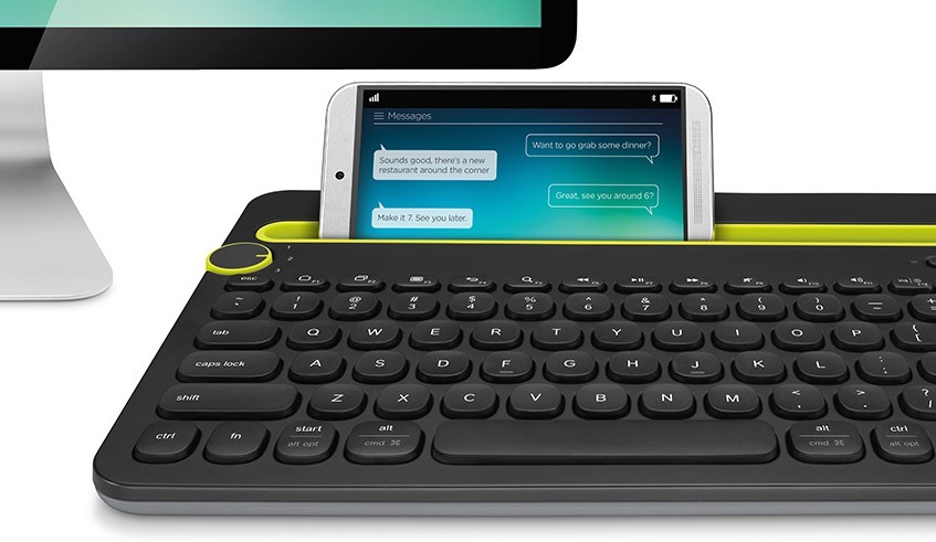Logitech K480 ワイヤレス Bluetooth キーボードは、コンピューター、タブレット、スマートフォンと互換性があります。後者の 2 つには、タイピング中に画面を最適に表示できるように、上部にチャネル (溝のような窪み) の形で予約された「パーキング スペース」があります (これが K760 および K810 モデルとの主な違いです)。 K480 は最大 3 台のデバイスを同時に制御でき、デバイス間の切り替えはノブを回すだけで簡単に行えます。