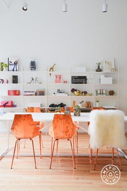 ファッションブロガーのレナドラ・メディーンとその共同クリエイターたちは、内装がマン・リペラー・ブログのトレンディな性質を反映した、より大きなオフィスを必要としていました。この目的を達成するために、彼女は Homepolish と協力し、Leandra のトレードマークである美学のすべての要素を包括する空間を共同で作成しました。