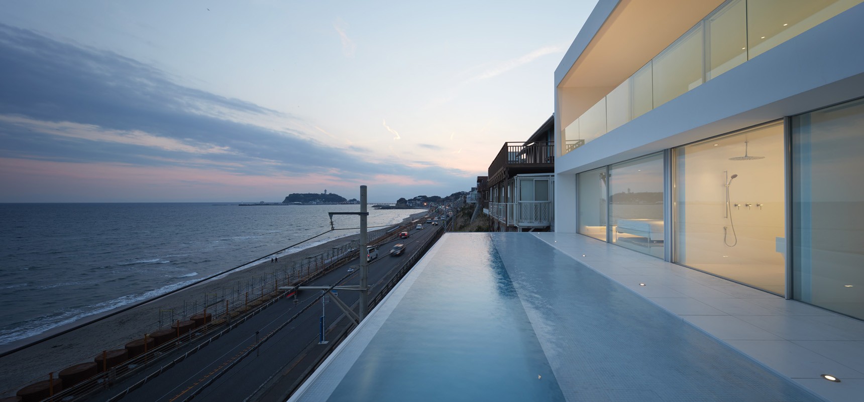 Šiniči Ogava je skupaj s sodelavci oblikoval bolj kot ne podolgovato počitniško hiško, ki jo krasi predvsem velika steklena stena oz. drsna vrata, ki vodijo na zunanjo teraso. To niti ne preseneča, saj so prostori obrnjeni proti morju. Notranjost in zunanjost sta oblečeni v belo keramiko, tako da se zdi, kot da je hišica iz enega kosa. Vgrajene luči, opremljene z velikimi pravokotnimi razpršilci, oddajajo svetlobo, zelo podobno 自然. Barvo svetlobe lahko prilagajate po potrebi in željah.