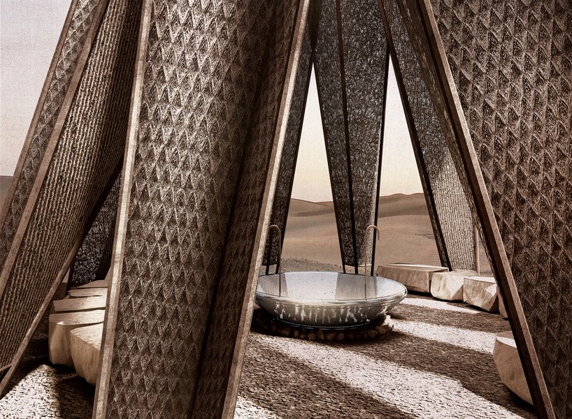Dina Haddadin と Rasem Kamal nameravata v jordanski puščavi ワディ・ラム 構築する trajnostni nomadski paviljon, ki spominja na pravi beduinski šotor. Struktura se bo odlično zlila z okolico in bo zatočišče za obiskovalce, ki jih bo pot zanesla v puščavo.