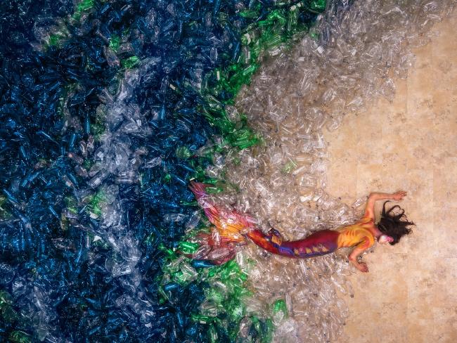 写真家のベンジャミン・フォン・ウォンは水中写真のファンで、ここ1年は写真プロジェクトで気候変動や野生動物の保護といった「退屈な」テーマに取り組んでいる。最新プロジェクト「Mermaids Hate Plastic」では、この傾向を継続させています。今回彼はプラスチック汚染に取り組みます。前の 2 人の被写体がレンズにもっと感謝していたとすれば、今回も、一見写真映えしない被写体から魅力的なシーンを作り出すことに成功しました。彼は水中少女を雇い、平均的なアメリカ人が生涯で消費する量である 10,000 本のボトルで海を作りました。このプロジェクトはプラスチック汚染という差し迫った問題に注目を集めています。