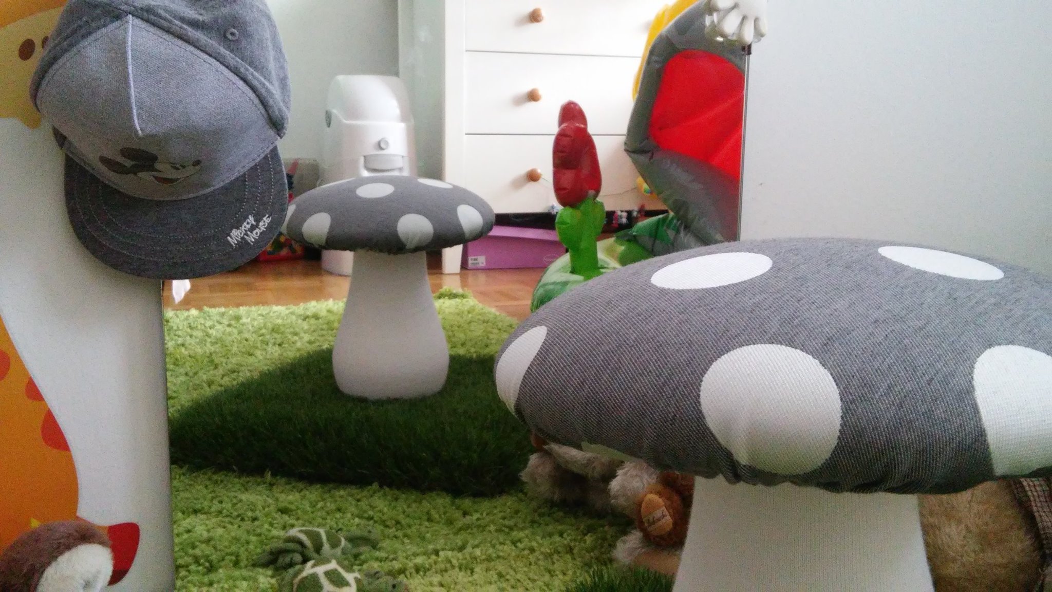 Igrivi otroški stol Mushy, ki je dizajniran kot mušnica, je aktiven stol slovenskega porekla. Na njem otrok sedi podobno kot na terapevtski žogi. Pomaga mu pri krepitvi hrbtnih in trebušnih mišic, izboljšanju ravnotežja, koncentracije in kreativnost ter ga nauči, da se drži vzravnano.