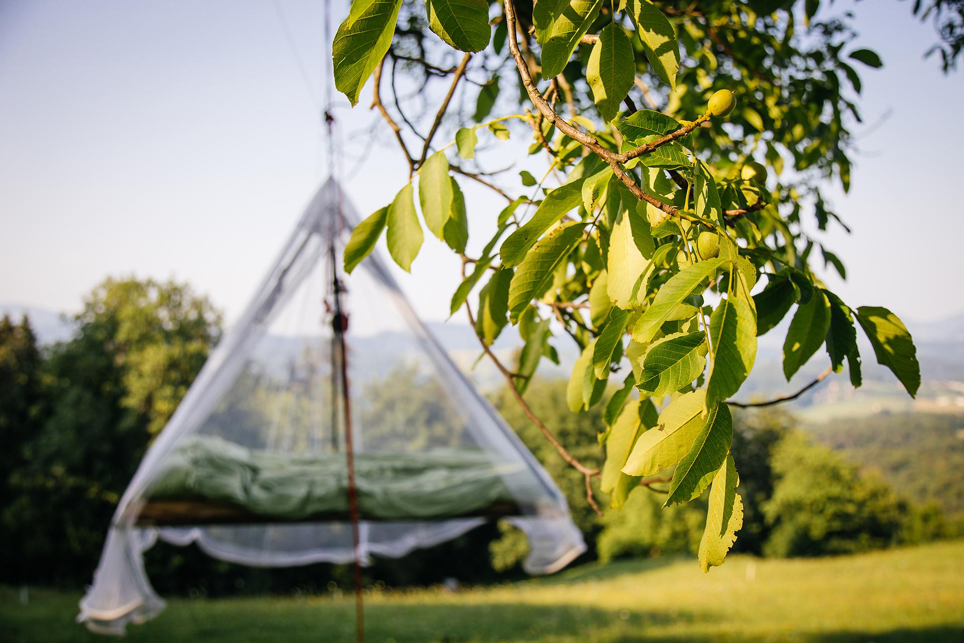 Ste za nepozabno izkušnjo v krošnjah dreves? Bivanje v krošnjah vam omogoča, da bivate na platoju ali v viseči postelji. Plato je vpet na drevesno deblo in omogoča spanje direktno ob drevesnem deblu visoko na drevesu. Platoji so različnih velikosti in omogočajo spanje od 2 – 6 osebam hkrati. Prav tako so ti platoji na različnih drevesih, z različnimi razgledi in na različnih lokacijah. Vsako drevo ima svojo energijo in prav vsak plato ponuja drugačno doživetje. Viseča postelja prosto visi z drevesne krošnje. Omogoča spanje dvema osebama. Viseče postelje so nameščene na drevesih z močnimi stranskimi vejami, ki omogočajo vpetje stran od debla drevesa. Posebnost teh postelj je, da jih namestijo tik pred nočitvijo. Dostop na posteljo je mogoč le z vzpenjanjem po plezalni vrvi. Za vzpon dobite vse plezalne pripomočke, tako da mu je kos vsak s povprečnimi telesnimi sposobnostmi. Za bivanje v viseči postelji smo izbrali več dreves, in sicer lahko izbirate med samostojnim drevesom ali drevesoma na obrobju gozda.