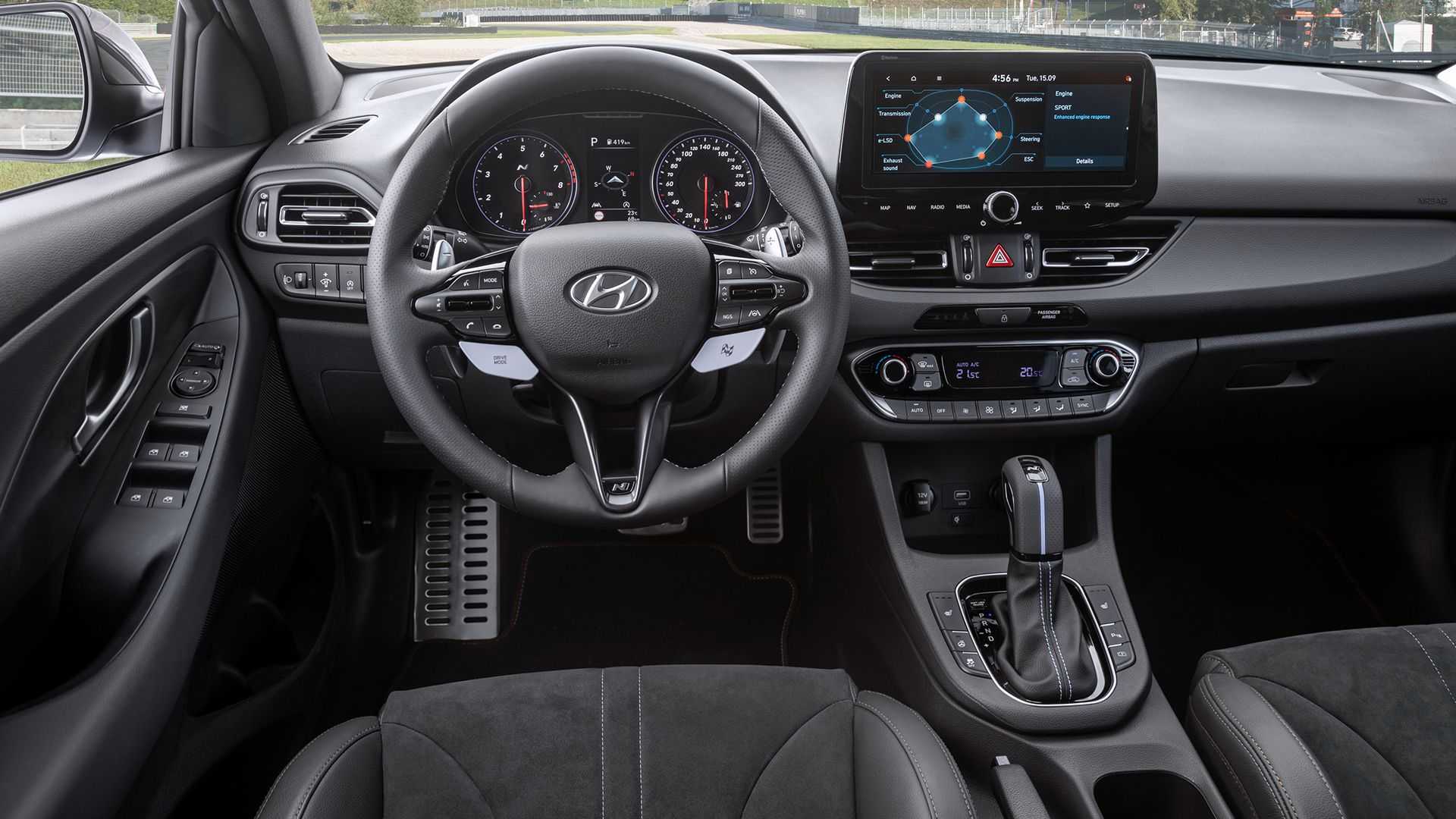 V notranjosti je posodobljen i30 N na voljo z lahkimi sedeži, ki v primerjavi z običajnimi stoli prihranijo 2,8 kilograma. Imajo tudi večje bočne opore. Preostali del kabine dobi množico malenkostnih detajlov, na primer kovinske stopalke in šiv Performance Blue, ki se pojavi celo na varnostnih pasovih. Notranjost oblazinjenja je črna in je na voljo tako v tkanini, kot tudi v mešanici umetnega semiša in usnja.