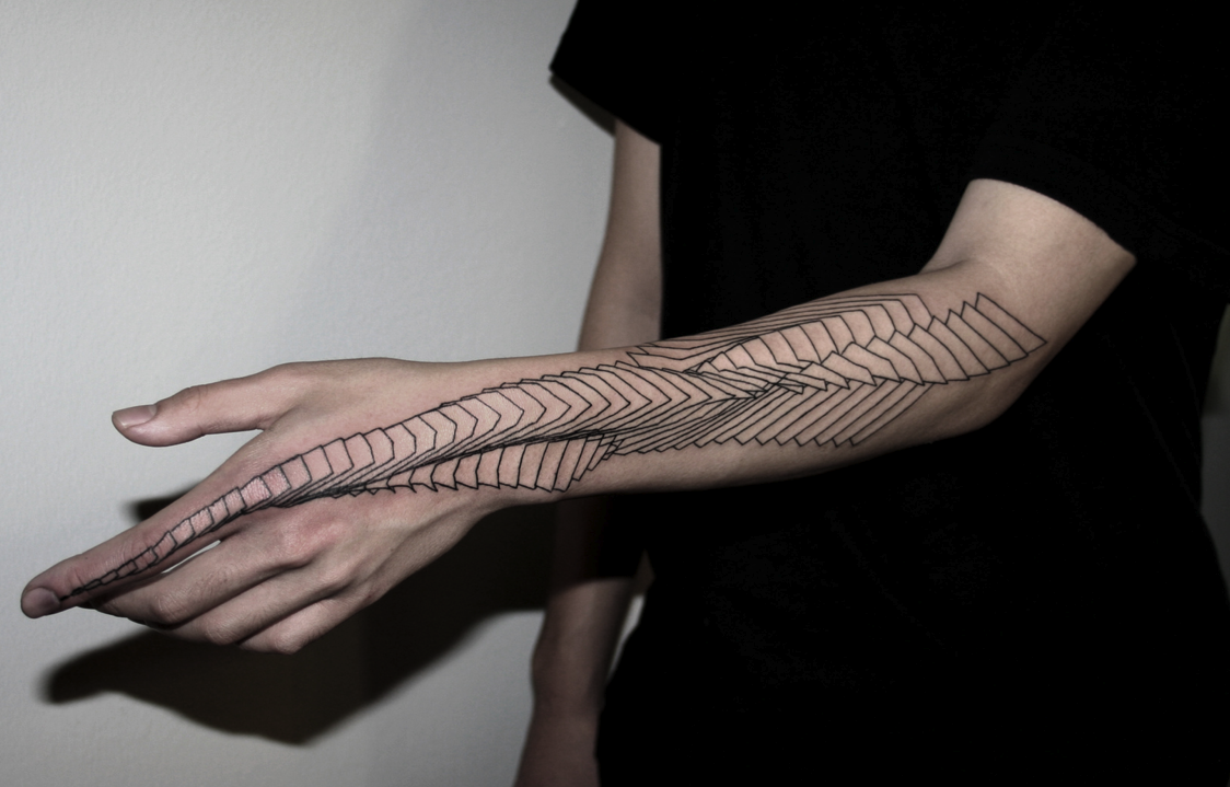 ベルリンのタトゥーマスター、ハイム・マクレフの作品は、この種のアートの愛好家の間でカルト的な地位を獲得して久しい。彼の「特徴」は、非常に正確に作られ、厳密な幾何学的な線に従って作られたタトゥーによって表されます。