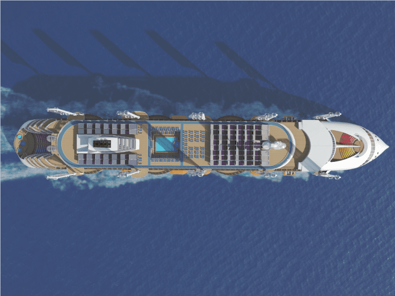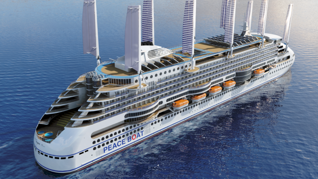 Peace Boat Ecoship それはです 60.000-tonska čezoceanka、スペースがあります 2000 potnikov. Opremljena bo z desetimi premičnimi と inovativnimi sončnimi paneli, ki lahko hkrati delujejo tudi kot jadra. Po vseh načrtih bo nared za plovbo v letu 2020, ravno v pravšnjem času, da počasti olimpijske igre v Tokiu. Navtični arhitekt Jaime Oliver je navdih za obliko križarke dobil, ko je leta 2012 na obalah San Sebastiana opazoval nasedlega kita.