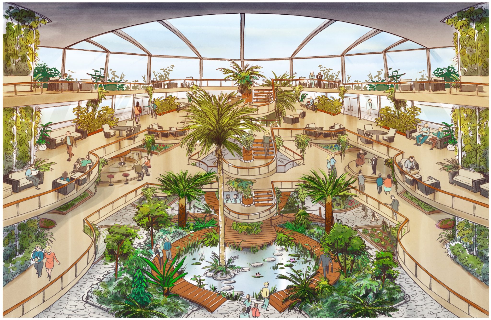 Križarka Ecoship bo opremljena z vsemi najnovejšimi inovacijami と テクノロジー, ki jo poznamo v svetu obnovljivih virov in trajnostnega razvoja. Zaradi tega naj bi se njeni izpusti zmanjšali za 30 %, poraba elektrike pa bo manjša za kar 50 %. Odpadno vodo bodo zmanjšali s pomočjo zaprtega vodnega krogaどこにあるか na petih nadstropjih veliko zelenja, ki bo porabljalo odvečno vodo, s tem pa bo križarka lahko pridelovala svoja zelišča in zelenjavo. Njen namen bo širjenje miru po svetu, ob tem pa se bodo na Ecoshipu trudili, da bi v čim manjši meri negativno vplivali na okolje.
