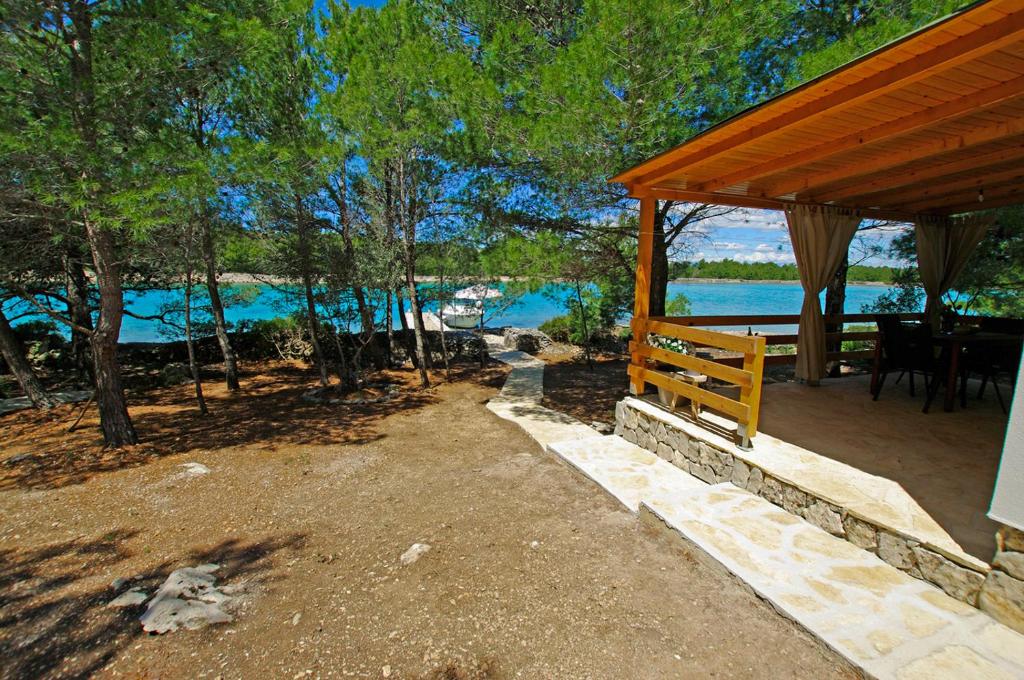 V zavetju borovcev, v bližini Pakoštan, se nahaja hišica s čudovitim pogledom na turkizni zaliv. Zasebna plaža je le 20 metrov stran od terase, zato je zasebnost zagotovljena. V njej se nahaja spalnica z zakonsko posteljo, v dnevnem prostoru je še zložljiv kavč. Elektriko se prav tako pridobiva s pomočjo sončnih kolektorjev, tudi vodo vam tekom dneva ogreje sonce samo. Poleg dobro opremljene kuhinje boste v hišici našli še televizor in WiFi, če se boste seveda v osami sploh želeli priklopiti na splet in elektronsko pošto. V glavni sezoni boste zanjo odšteli 170 evrov/dan.