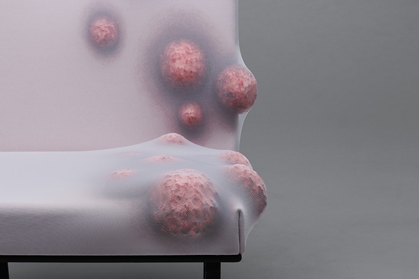 Za trenutek se ustavimo in pomislimo, na kaj namiguje. Eden od stolov je videti fizično, drugi pa čustveno precej neudoben. “Diseased”, kot je poimenoval prvi stol, spominja na kožne težave, kot so akne ali celo tumor. Stol je videti skoraj strašljivo, saj so izbokline na površini precej očitne. Ni videti udoben. Drugi, “Damaged”, pa je videti kot koža z odprtimi vrezninami. Z razdalje spominja na običajen stol, a ko se nanj usedete, se vreznine povečajo in občutek ni prijeten.