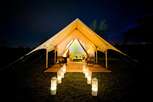 150 čudovitih šotorov je rezerviranih za slavne in premožne, ki so v sklopu pop-up hotela deležni prestižnega razvajanja v obliki sproščujočega skupnega prostora, restavracije, spa predela in zasebnih šotorov, ki so dejansko glamurozne spalnice z vso potrebno opremo. Najbolj prestižen šotor meri kar 2000 kvadratnih metrov, najamemo pa ga lahko za vrtoglavih 9.000 funtov.