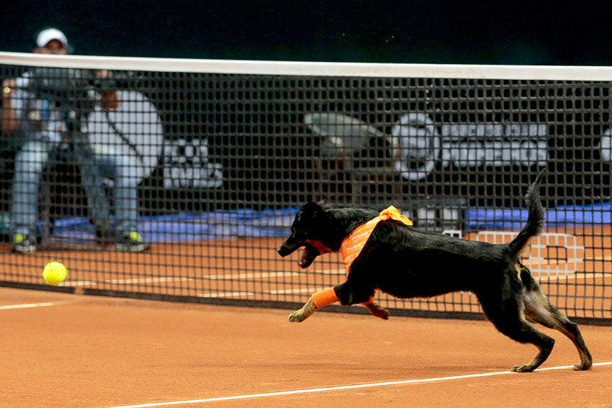 4つ psi iz zavetišča so se nedavno preizkusili kot pobiralci teniških žogic. Namesto običajnih pobiralcev in pobiralk so Frida, Costela, Mel in Isabelle vskočili na ogrevalnem delu dvoboja med Špancem Robertom Carballesom in Portugalcem Gastãom Eliasom na odprtem prvenstvu Brazilije.