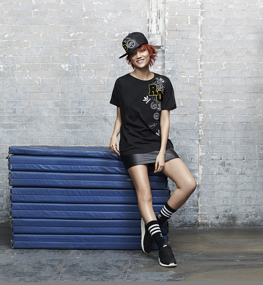 Kolekcijo Rita Ora x adidas Originals, ki izstopa zaradi uporniškega videza, je Rita vdihnila svoj osebni stil, kolekcijo pa zaznamujejo usnjeni kosi, 鮮やかな色 と drzni potiski, ki se svetijo v temi.