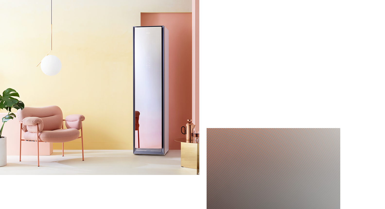V hitrem tempu življenja je težko najdemo čas še za resnično skrbno nego oblačil. Tu nastopi AirDresser, izdelek, ki ga je Samsung ponudil predvsem osebam, ki hočejo imeti obleko vedno pripravljeno za skok v življenje. Gre za manjšo pokončno omaro iz アルミニウム そして steklenim prednjim delom. Ta ne služi samo kot 鏡, temveč poseben vzorec znotraj ogledala le-to zlije s prostorom.