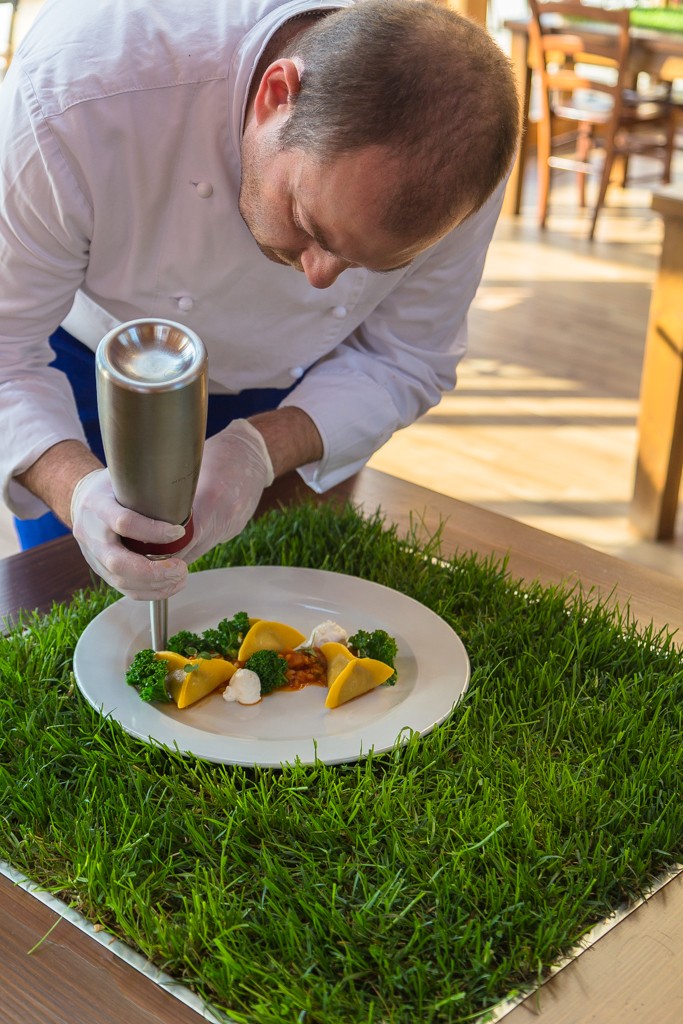 Prijazno osebje restavracije Vrtnarija postreže z najboljšim, kar pride izpod rok kuharskega mojstra Dušana z ekipo, ki prvovrstne setavine z lastnega vrta と lokalnih kmetij, nadgradi in jim da novo vsebino. Pričakujemo lahko posebno kulinarično doživetje in okušanje slovenske tradicije na popolnoma nov način. Čez dan nas bodo razvajali s kavo in おやつ, pestrim izborom solat, kruhki in sladicami, na večerjo pa smo ob predhodni rezervaciji vabljeni po 18. uri.