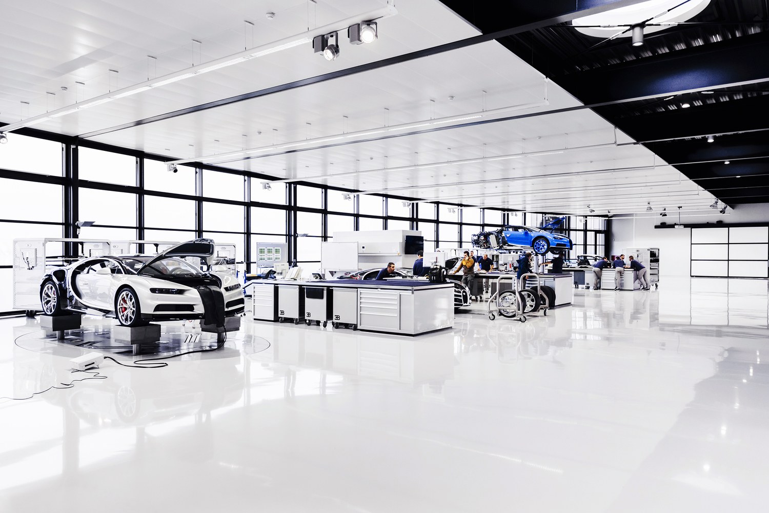 Kupec si lahko pri naročilu pošteno izmišljuje. Izbira lahko med 23 barvami karoserije, med oktetom dodatkov iz ogljikovih vlaken, med kar 30 načini šivanja, med 18 različnimi preprogami, med 31 barvami oblazinjenja, med 11 varnostnimi pasovi …, kar pomeni, da noben Chiron ne bo enak drugemu. Tla tovarne prekrivajo odporna epoksidna tla, v njej pa je, kot rečeno, bolj čisto kot v operacijski sobi.