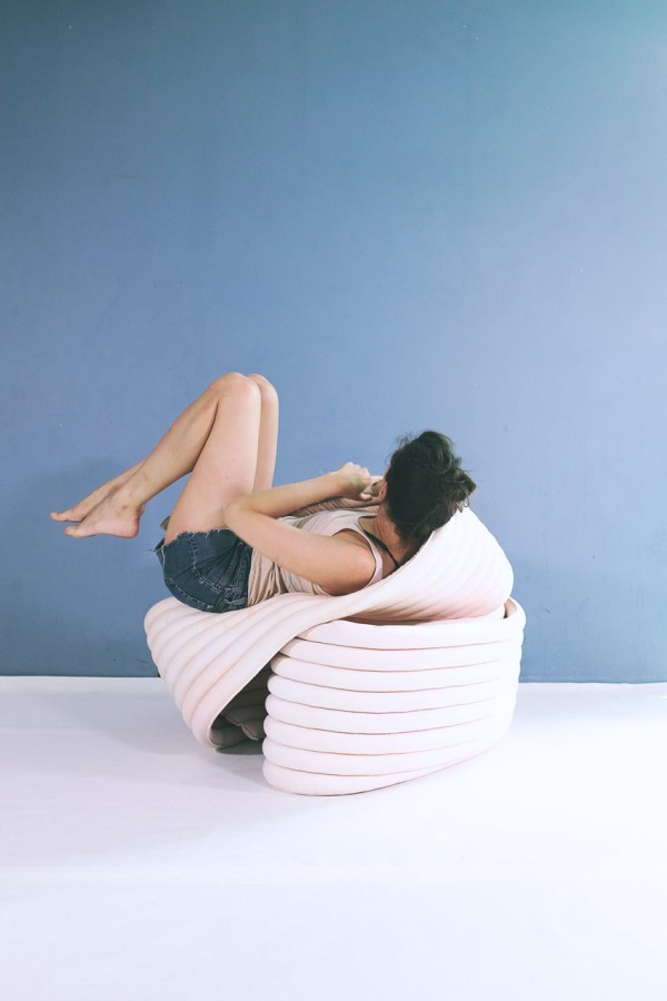 ロンドン出身のフィンランド人デザイナー、キルシ・エンコヴァーラは、英国王立芸術大学で学んだ後、座ることの心理学を研究し、人は立っているときよりも座ったり横になっているときのほうがはるかにリラックスできるという結論に達しました。だからこそ、彼女は安全で快適な椅子を作りたいと考えたのです。そして、体を曲げることができる柔軟性のある椅子と、座り方の文化的規範であるThe Bodyが誕生しました。