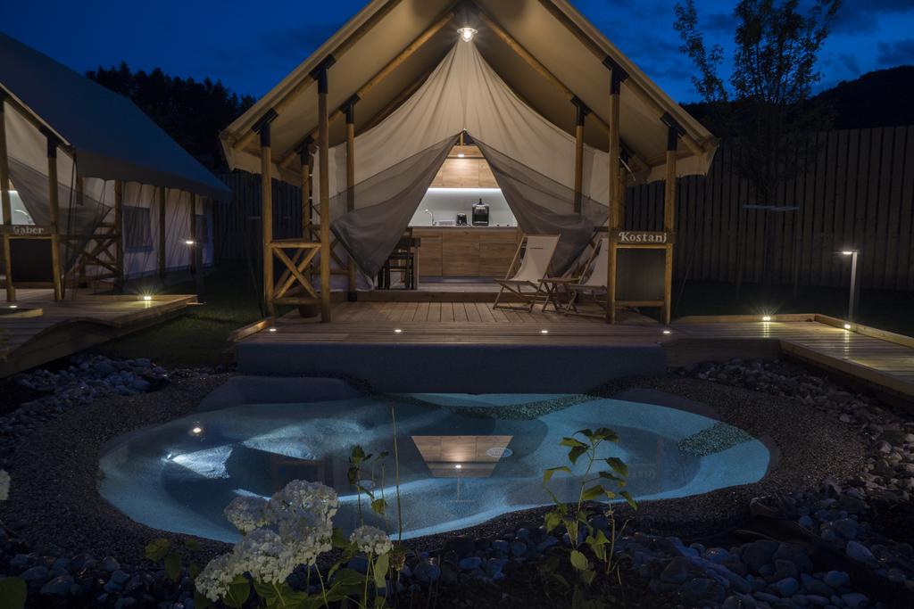 Glamping Olimia Adria village je mala glamping vasica, pravi raj za družine, avanturiste ali romantike. V stiku z naravo boste prebivali v luksuznih, stilsko dovršenih in popolnoma opremljenih šotorih dveh velikosti. Dan lahko preživite v enem od termalnih bazenov Term Olimia ali pa pritisnite na gumb in se lenobno zleknite v mehurčke zasebnega jacuzzija pred šotorom. Sicer pa se lahko razgibate tudi v fitnesu, najmlajšim pa sta namenjena otroško igrišče と zgoraj omenjeni vodni park.