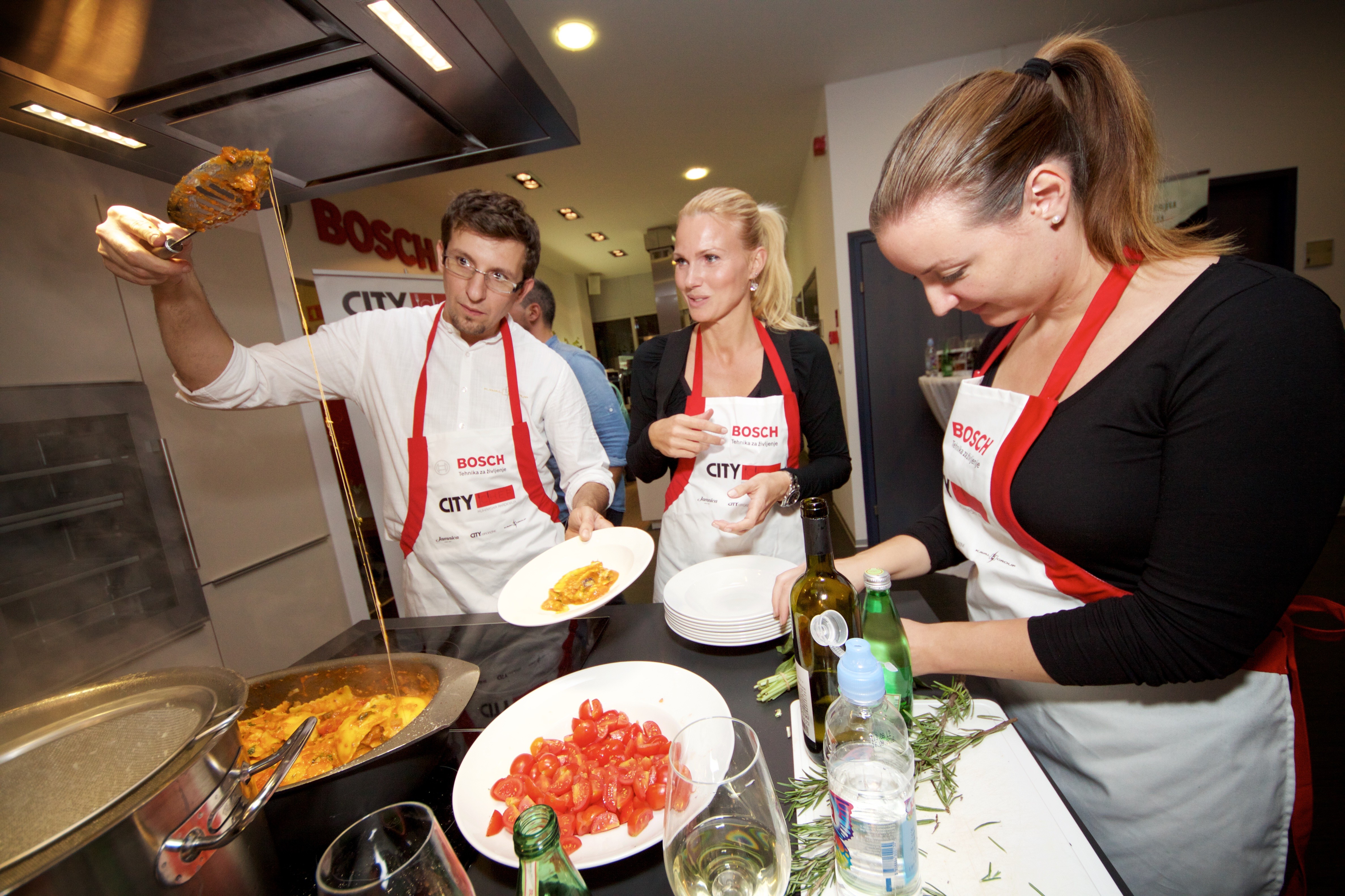 10月のクッキングアカデミー - CITY CHEFでは、参加者は改装されたボッシュ&シーメンスサロンでイタリア料理をじっくりと鑑賞し、楽しい仲間とともに再びすべての皿を味わいました。カプリーニのサラダを添えたもの、ポルチーニ茸とエビのニョッキを添えたもの、生の「シチリアーナ」ラビオリを添えたもの、さらにはイタリアのティラミスを添えたものはいずれも後回しにはできませんでした。同時に、一滴のルジュも添えられました。一度はリブラ、二度目はソーヴィニヨン、三度目はキャンティでしたが、不足していたのはジャムニカイベントの公式水でさえありませんでした。