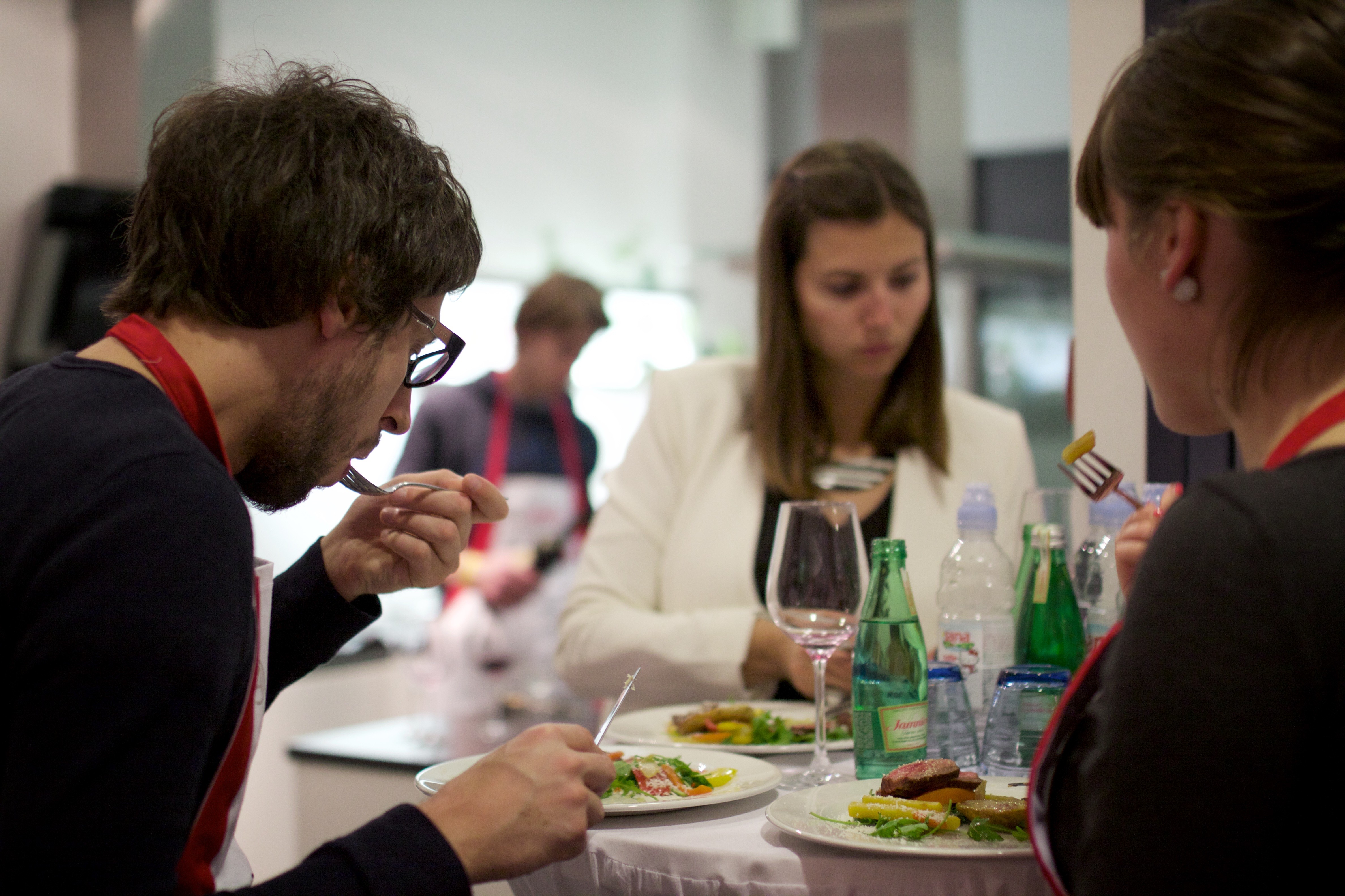Spretno in z obilico humorja nas je popeljal in angažiral pri pripravi hobotnice v solati, kostanjevih njokov z gamberi in ribo, pečenega krompirja in govejega zrezka ter sladice s kozjim sirom, ki je lepo zaokrožila tri urice druženja ob štedilniku. Ob hrani pa je naše brbončice razvajalo tudi različno vino in uradna voda dogodka ピット.