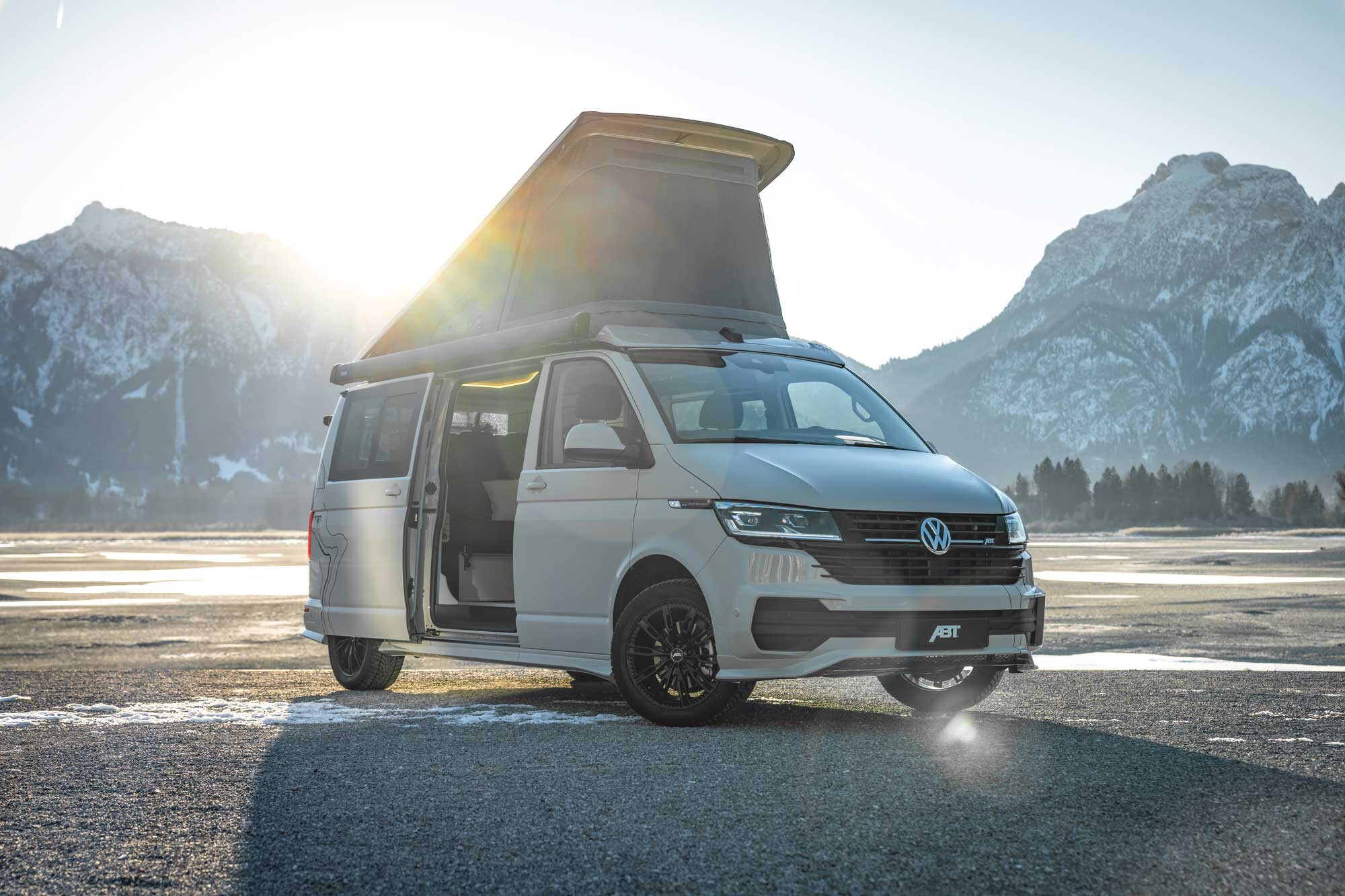 この美しさは普通のキャンピングカーとは違います。新しいものから始める T6.1 寄付者の車両は、自給自足型の高級で堅牢なキャンピングカーに変身します。 ABT XNH (より深刻な地形を除いて) どこにでも移動できるように作られており、カスタム ペイントと地形パッケージにより、人目を引くものになっています。