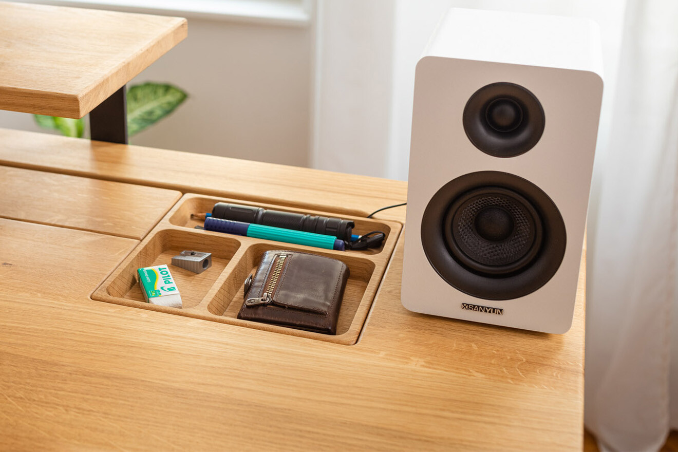 優れた機能 ErgoHide je njegova prilagodljiva oblika. Za svojo mizo izberite med masivnim hrastovim lesom ali “inženirskimi materiali” ter tako izberite mizno ploščo, ki ustreza vašim potrebam. S tremi različnimi delovnimi površinami za možnosti iz masivnega lesa in MDF (vlaknene plošče srednje gostote) lahko ustvarite delovni prostor, ki odraža vaš slog in želje. A pri znamki EgoHide se niso zaustavili tu. Naredijo vam tudi mizo, popolnoma po vaših merah. Enostavno vaše želje vpišete v konfigurator!