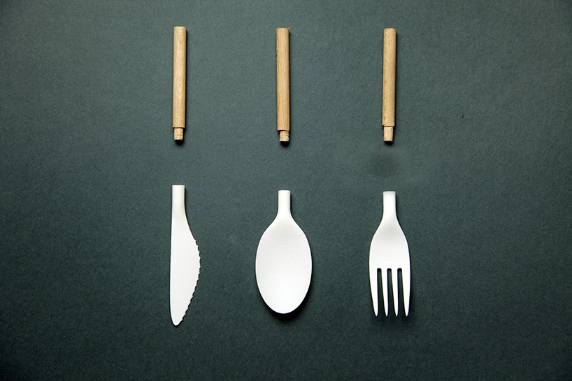 デザイナー Riccardo Randi se je koncepta za inovativen jedilni pribor za s sabo domislil že, ko je oblikoval celostno podobo italijanske restavracije, za katero je delal. V poskusu, da bi našel primeren pribor za njihovo obedovalnico, je kaj hitro ugotovil, da je izbira očesu prijaznega, estetskega jedilnega pribora, ki ga lahko gosti vzamejo s seboj, omejena na minimum. Med oblikovanjem za restavracijo je sklenil, da je material, ki bi ga hotel za tovrsten pribor vsekakor 木, saj se mu zdi ta najbolj prijeten na otip. Ker pa videz ni vse in ima les neprijeten okus, je združil najboljše iz obeh svetov in oblikoval jedilni pribor iz lesenih držal za večkratno uporabo in reciklabilnih plastičnih naglavnih delov. Medtem ko so leseni deli prototipov kolekcije “Wood+Plastic”, ki trenutno ni v prozivodnji, izdelani ročno, so plastični narejeni s pomočjo tehnologije tridemenzionalnega tiskanja najlonske plastike.