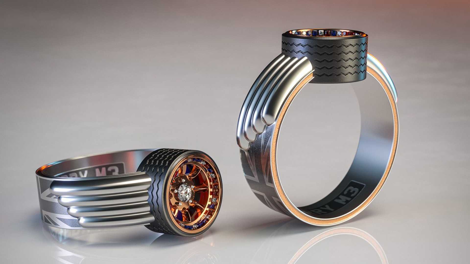 Da imate na roki prstan, v obliki avtomobilske gume z vstavljenim velikim diamantom, je morda res malce preveč, a ne v primeru, ko ste pravi avtomobilski navdušenec. Poleg različnih stilov prstanov, je mogoče le te tudi gravirati in tako še dodatno personalizirati. In če bil prstan narejen iz ʺostankovʺ vam zelo ljubega avtomobila? Zanimivo mar ne.