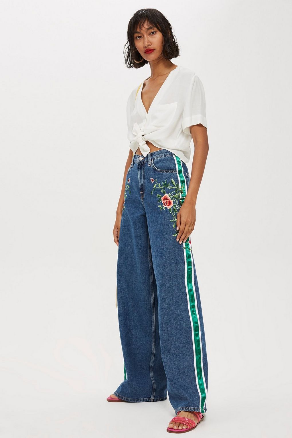 Široke kavbojke že nekaj let doživljajo renesanso in, iskreno povedano, so darilo, ki kar naprej daje in daje. Danes so te kavbojke videti precej manj raversko in veliko bolj fino. Odlično se podajo k supergam in oprijetemu 作物 topu z dolgimi rokavi.