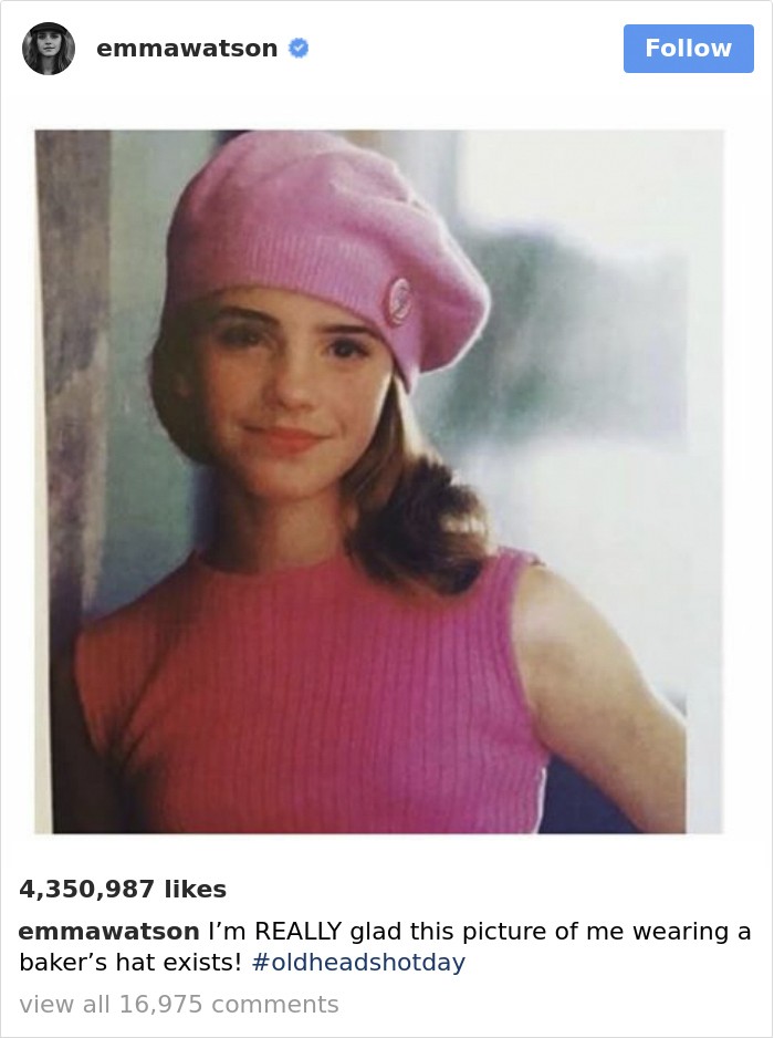 私たちのもの 古い写真 ne izginejo tako zlahka. Tudi če smo jih izbrisali s trdega diska, naša mama še vedno skrbi za アルバム, kjer so dokumentirane vse naše nerodne in po(ne)srečene faze. A brez skrbi, takšne faze so doletele tudi številne zvezdnike, torej igralce, glasbenike itd., ki pa fotografije ponosno delijo. Te se delijo pod hashtagom #OldHeadshotDay. Če imamo vsaj nekaj sreče in zaupanja, potem morda gremo po stopinjah Emme Watson, Ryana Reynoldsa in drugih vsem dobro znanih obrazov, ki nas presenečajo s svojimi ljubkimi portreti.