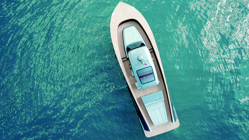 Prednji del jahte se strmo dviga iz vode in precej visoko gleda iz nje. Posledično je lažje kos tudi večjim valovom in je tako hitrejša tudi v slabših pogojih za plovbo. Trup ima visoko V-obliko, okoli premca pa je leseni rob, ki deluje kot nekakšna ozka sprehajalna pot. Kabina ni pretirano velika in je prav tako v minimalističnem slogu, se pa v njej vseeno najde dovolj prostora za udobno spalnico in dovolj veliko kopalnico. Ob nakupu si bodoči lastnik lahko omisli katerokoli barvo trupa, vse ostale površine pa so na voljo iz kateregakoli lesa. Za pogon skrbita dva motorja Volvo IPS 600, z njuno pomočjo pa jahta doseže maksimalno hitrost 38 vozlov. Na krovu je dovolj goriva za 300 navtičnih milj.