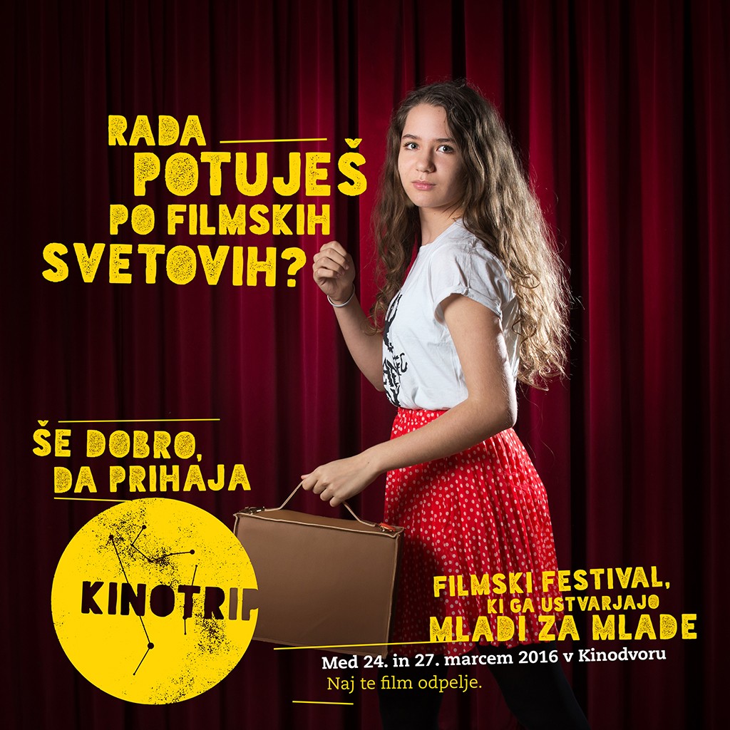 Od mladih za mlade. Od novembra se v Kinodvoru medi vsebina prvega mednarodnega filmskega festivala Kinotrip, festivala, ki so ga ustvarili mladi za mlade. Štiridnevni dogodek bo potekal med 24. in 27. marcem 2016, ko se bodo na filmskem platnu Kinodvora zvrstili animirani in dokumentarni film, grozljivka, filmska klasika in za poobedek še poslastica svetovne kinematografije. Poleg projekcij se bomo lahko udeležili pogovorov in druženj z gosti z domače in tuje scene ter delavnic (videa in kratkega filma, snemanja filmskih podkastov, VJ-anja z DIY-mikroskopom). Celoten (in še podrobnejši) program festivala Kinotrip bo 7. marca objavljen na spletni strani kinodvor.org/kinotrip.