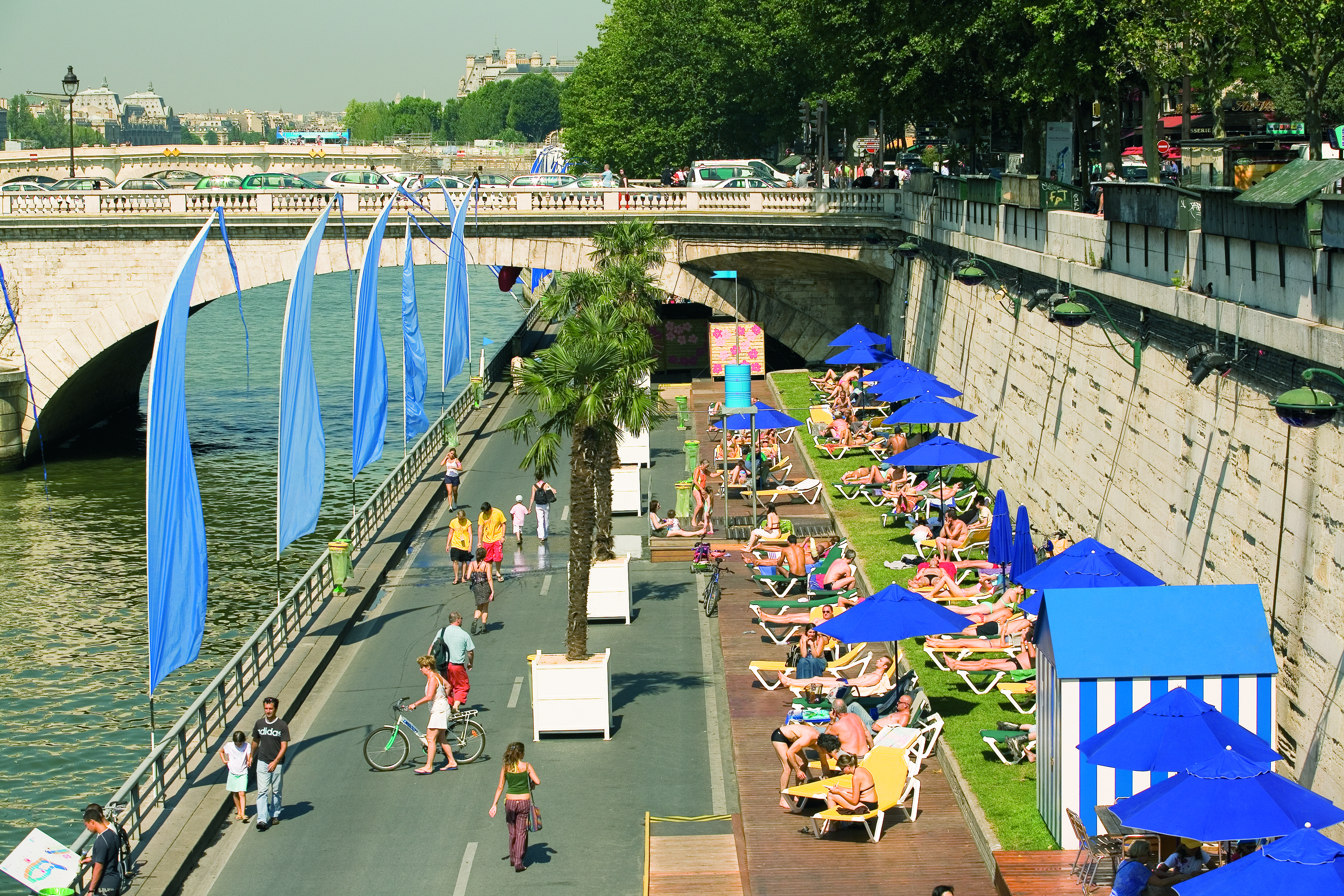 이미 2002년에 자동차 대신 강 제방이 호스팅되기 시작했습니다. 파리 플라주, 7월 20일경에 문을 열어 8월 말까지 현지인과 방문객을 즐겁게 하는 파리 해변입니다. 해변은 도시의 세 부분에 걸쳐 펼쳐져 있습니다. 오래된 코어에 가장 가까운 부분은 다음과 같습니다. 루브르 박물관에서 퐁 드 쉴리까지, 이는 또한 최초의 도시 해변이었습니다.