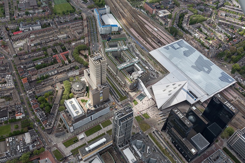 2차 세계대전으로 황폐해진 도시 재건 75주년을 맞아 로테르담 중앙역(로테르담 중앙역) 앞에 거대한 계단이 대중에게 공개됐다. 이것은 1953년에 완공되었으며 도시 폭격 이후 지어진 최초의 주요 건물 중 하나인 기념비적이고 역사적으로 중요한 Groothandelsgebouw의 꼭대기로 이어집니다.