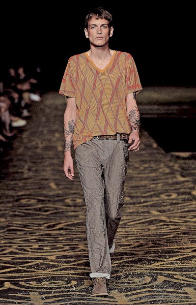 Boss Black 컬렉션은 깔끔한 라인, 놀라운 디테일, 고급스러운 소재를 강조합니다. 꼭 맞는 실루엣의 의류는 클래식하게 작동합니다. 남자는 건축에서 영감을 받아 새로운 완벽주의자로 변신한다. 색상은 베이지부터 회색까지 다양하며, 카키, 블랙, 코발트 블루가 추가됩니다. Boss Orange 컬렉션은 뜨거운 아프리카에서 영감을 얻었습니다. 롤업한 데님이나 반바지, 고급 니트웨어, 유기농 면 셔츠, 모카신을 입고 한 남자가 기념 사파리에 나선다. 블루부터 베이지까지 파스텔 컬러에 베두인 패턴 등 아프리카적 요소가 가미되어 더욱 생동감을 더해줍니다. 고급스러운 Boss Selection 컬렉션은 하버드 사업가의 이미지를 만들어냅니다. 최고급 품질과 우수한 디자인, 뛰어난 핏, 패셔너블한 라인과 고급스러운 디테일이 특징입니다. 깨끗하고 자신감 넘치는 룩은 바이커 재킷과 도마뱀 가죽 끈이 달린 옥스포드 슈즈로 강조되었습니다. 주요 색상은 브라운, 베이지, 구리색, 로즈우드 색상입니다.