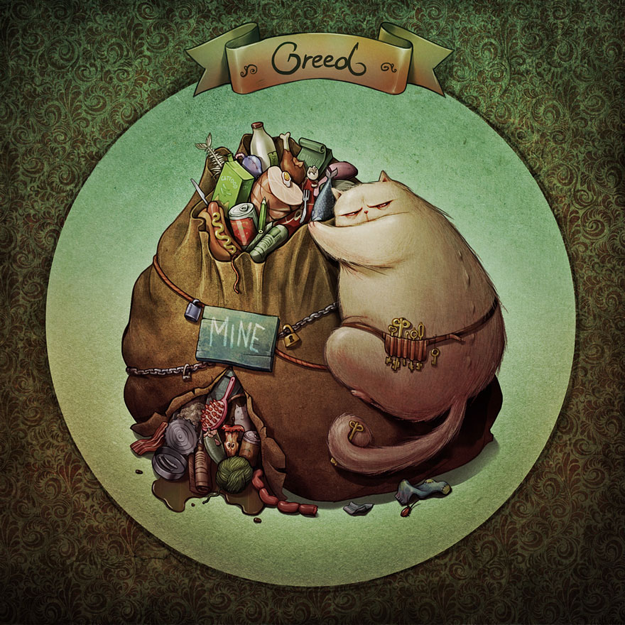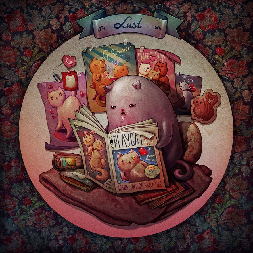 낮에는 컴퓨터 게임을 만들고, 밤에는 자신의 영혼을 표현하는 마리아 티우리나. 고양이의 7가지 대죄를 묘사한 재미있는 일러스트 시리즈가 탄생한 과정입니다. 하지만 그녀는 여덟 번째를 자신만의 것으로 추가했습니다.