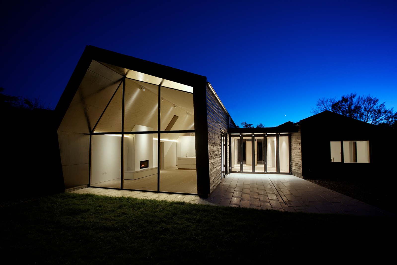 디자인한 집은 내쉬 베이커 건축가 Kentish 유형의 헛간에서 영감을 얻었으며 검은 목재와 전형적인 지붕 구조가 마무리 터치를 제공했습니다. 나무 블라인드는 그늘진 실내와 프라이버시를 유지하는 데 도움이 됩니다.