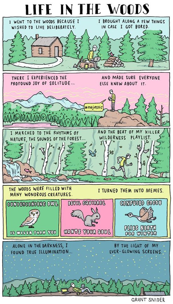 Odvisnost od pametnih telefonov ni več le neka preteča nevarnost. Odvisnost je tu in marsikdo je zabredel že zelo globoko. In čeprav nam tovrstna tehnologija dajejo občutek, da smo med sabo povezani bolj kot kdajkoli, pa je to le iluzija. Telefoni so postali nadomestki za prijatelje, povzročili so, da smo v nekaj letih pozabili kaj pomeni druženje, kaj pravi pogovor. To spoznamo skozi serijo smešnih a hkrati globokih in smrtno resnih ilustracij, ki nam nastavljajo ogledalo.