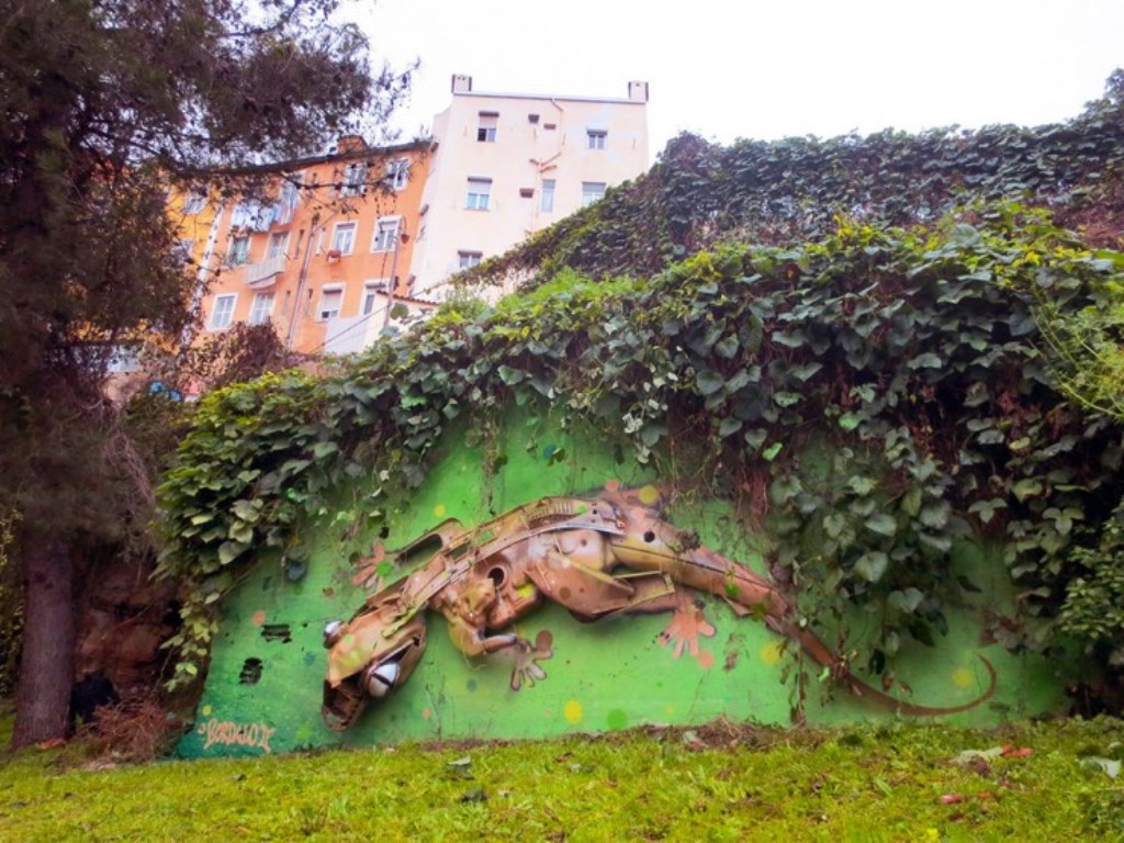 포르투갈 수도에서 현지 예술가 Arturo Bordalo "Bordalo II"는 도시에 쌓인 쓰레기에 사람들의 관심을 끌 수 있는 방법을 찾았습니다. Bordalo II는 버려진 자동차 부품, 고철, 쓰레기를 사용하여 다채로운 3D 동물 그림을 만듭니다.